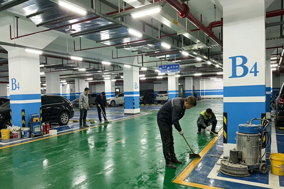 保定易县南城司乡停车场车库聚氨酯地坪施工厂家